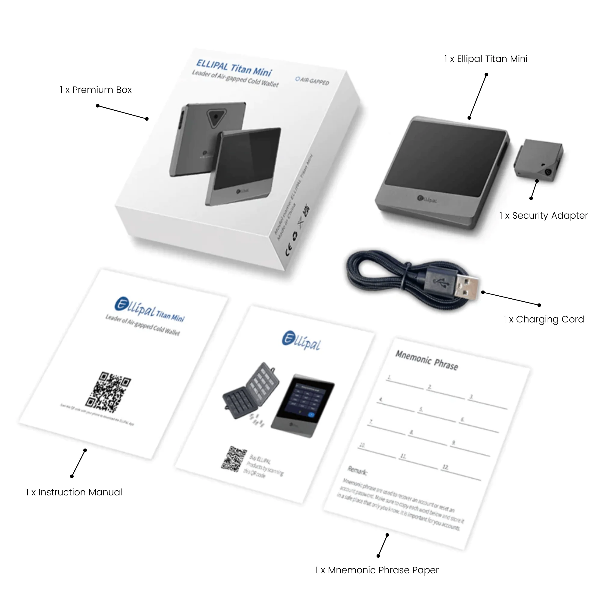 The ELLIPAL Titan Mini Premium Bundle delivers advanced cold-storage protection in a compact, portable form. Designed for users who want serious security without sacrificing convenience, this bundle includes: